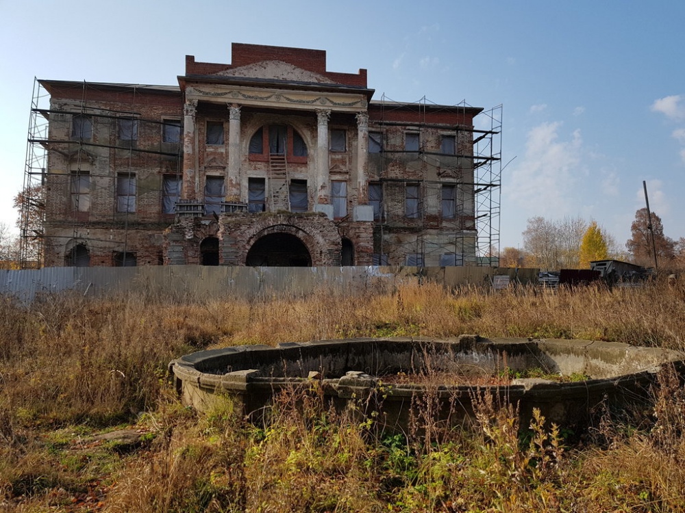 Архитектурной доминантой усадебного комплекса является двухэтажный кирпичный дворец, расположенный на главной планировочной оси. Это роскошное творение с греческим портиком под низким фронтоном, с итальянскими арками в цокольной части и полукруглыми трехчастными окнами. по первоначальному проекту к дому были пристроены четыре прямоугольных флигеля, к которым позднее пристроили портики с фронтонами. Декор фасада изобилует многочисленными элементами, вокруг парадного двора были высажены кусты акаций, внутренний двор украшал фонтан, а за парком открывался чудесный вид на реку Нару.