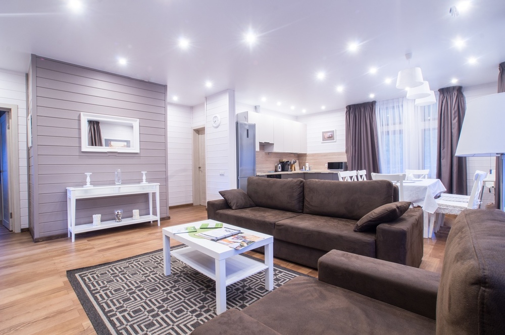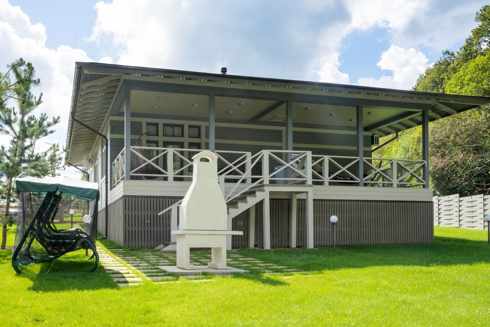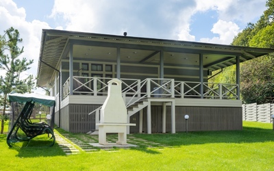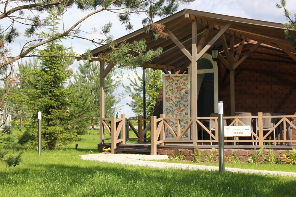 8 одноэтажных с большими крытыми терассами, расположены в тихом уютном месте в окружении леса