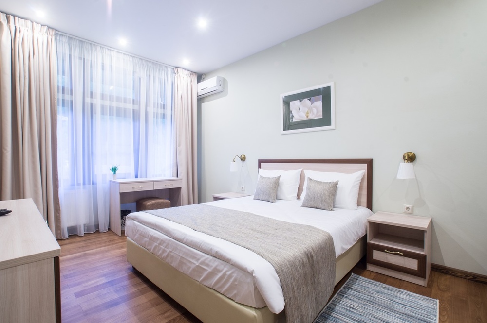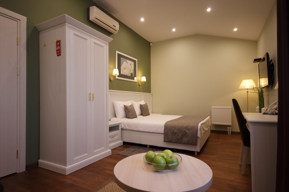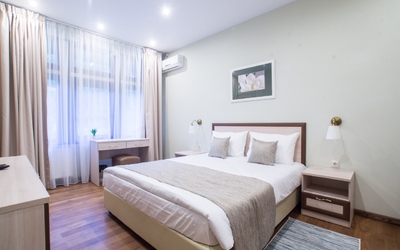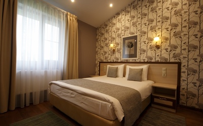 В каждом номере есть односпальная или двуспальная кровать, шкаф, рабочий стол со стулом, телевизор со Смарт ТВ, фен, душевая кабина, телефон, мини-бар, зеркало, сейф, кондиционер и Wi-Fi. В номере Superior также есть журнальный столик и мини-диван. Вы непременно оцените оригинальность оформления и удобство номеров в нашем недорогом отеле в Подмосковье.