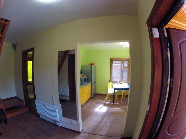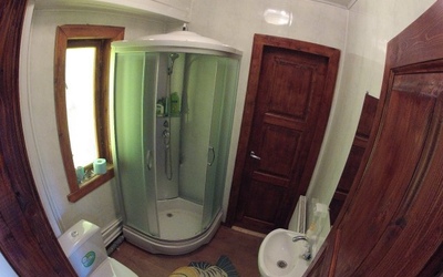 В доме находится общий душ, два санузла, утюг, общая кухня с посудой, холодильником, плитой, микроволновкой, (чай, сахар бесплатно), телевизор и бесплатный Wi-Fi.