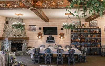 Деревянная мебель, авторский дизайн помещения, уютный камин, вид на реку Оку делают ресторан на горе привлекательным местом для проведения различного рода частных мероприятий и банкетов.
