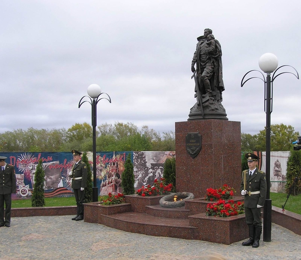 Он узнаваем с первого взгляда — красноармеец с девочкой на руках, попирающий разбитую свастику — символ побежденного фашизма. Солдат, вынесший главные тяготы Второй мировой и завоевавший мир для Европы.