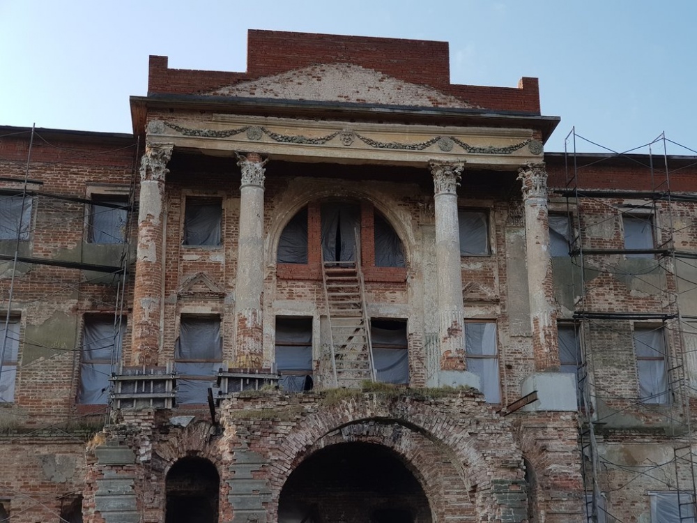 Архитектурной доминантой усадебного комплекса является двухэтажный кирпичный дворец, расположенный на главной планировочной оси. Это роскошное творение с греческим портиком под низким фронтоном, с итальянскими арками в цокольной части и полукруглыми трехчастными окнами. по первоначальному проекту к дому были пристроены четыре прямоугольных флигеля, к которым позднее пристроили портики с фронтонами. Декор фасада изобилует многочисленными элементами, вокруг парадного двора были высажены кусты акаций, внутренний двор украшал фонтан, а за парком открывался чудесный вид на реку Нару.