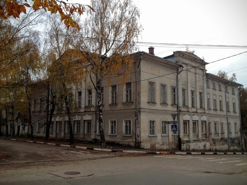 Усадьба Соллогубов, хотя правильнее было именовать ее усадьбой Ф.А.Солодовникова, построена в конце XVIII – начале XIX века. Это двух этажное здание с двумя флигелями, расположенное на углу квартала принадлежало серпуховским купцам Солодовниковым. В 1871 году В.А. Солодовников продает дом Н. Ф. Самарину, который предоставляет его в распоряжение Серпуховского благотворительного общества. В 1873 году Самарин перепродает дом графине Соллогуб, открывшей в нем приют и училище для белошвеек.