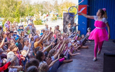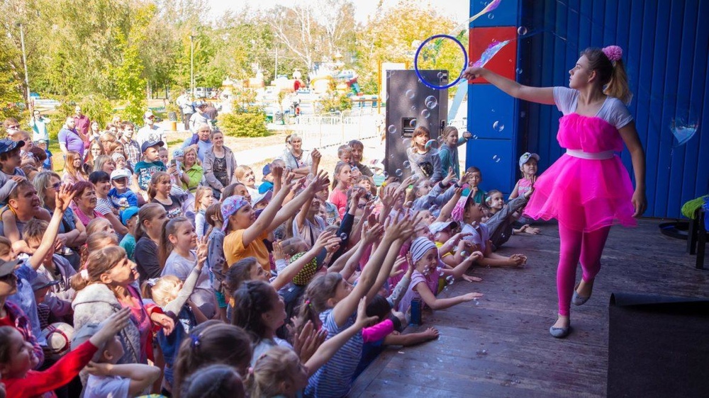 В парке проходят массовые мероприятия для всей семьи, для этого предусмотрена сцена.