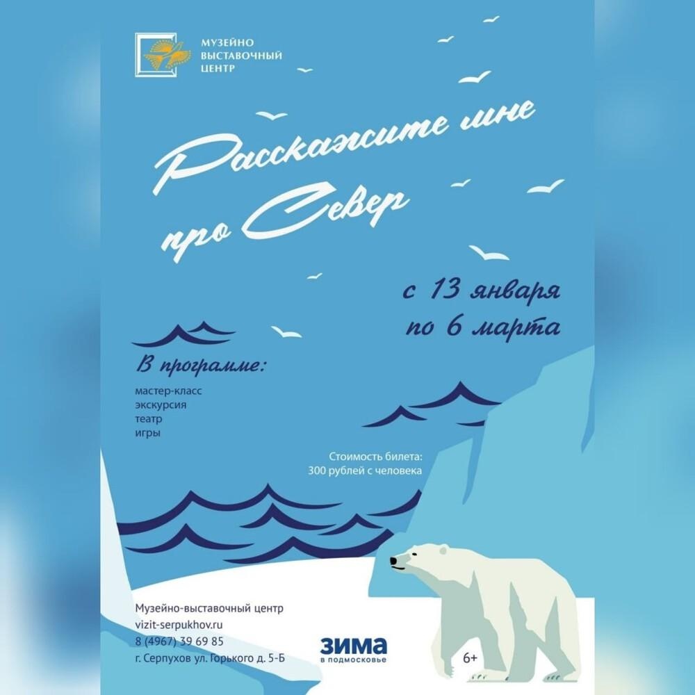 Музейно-выставочный центр приглашает гостей и жителей Серпухова стать участниками программы "РАССКАЖИ МНЕ ПРО СЕВЕР". Во время интерактивной экскурсии по выставке "Путешествие в арктику" вы с капитаном пройдёте по Северному морскому пути, узнаете о героях-полярниках, увидите суда Северного ледовитого океана и красоту Заполярья. Полярники посвятят вас в папанинцев. а ещё вас ждут игры, научные эксперименты, мастер-класс, встреча с белым медведем.