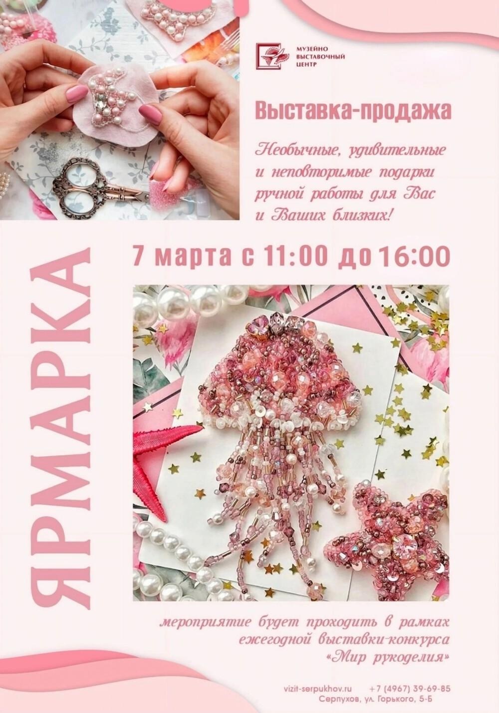 7 марта с 11:00 до 16:00 в рамках ежегодной выставки-конкурса "Мир рукоделия, в нашем уютном пространстве — ярмарка изделий ручной работы!